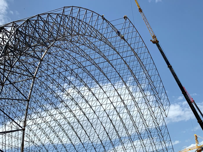 (2)网架加工前应对现场尺寸进行复测,确认无误后方可进行加工、安装;网架制作、运输、安装应遵守《空间网格结构技术规程》JGJ7-2010、《钢网架林州螺栓球节点》JG/T 10-2009、《钢网架林州螺栓球节点用高强度螺栓》 GB/T 16939-2016、《林州钢结构林州工程林州施工规范》 GB50755-2012、《林州钢结构林州工程施工质量验收标准》 GB50205-2020。